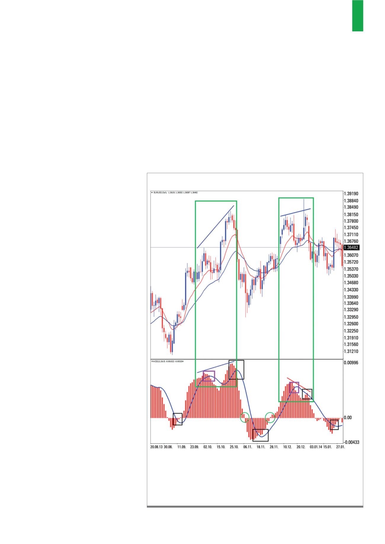 απόκλισης της τιμής του EURUSD και του δείκτη MACD.